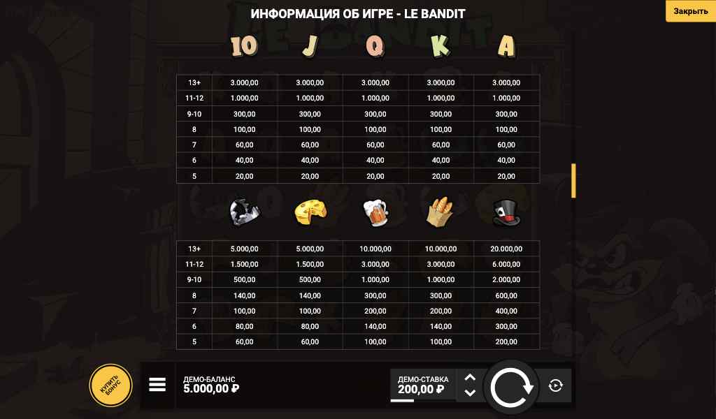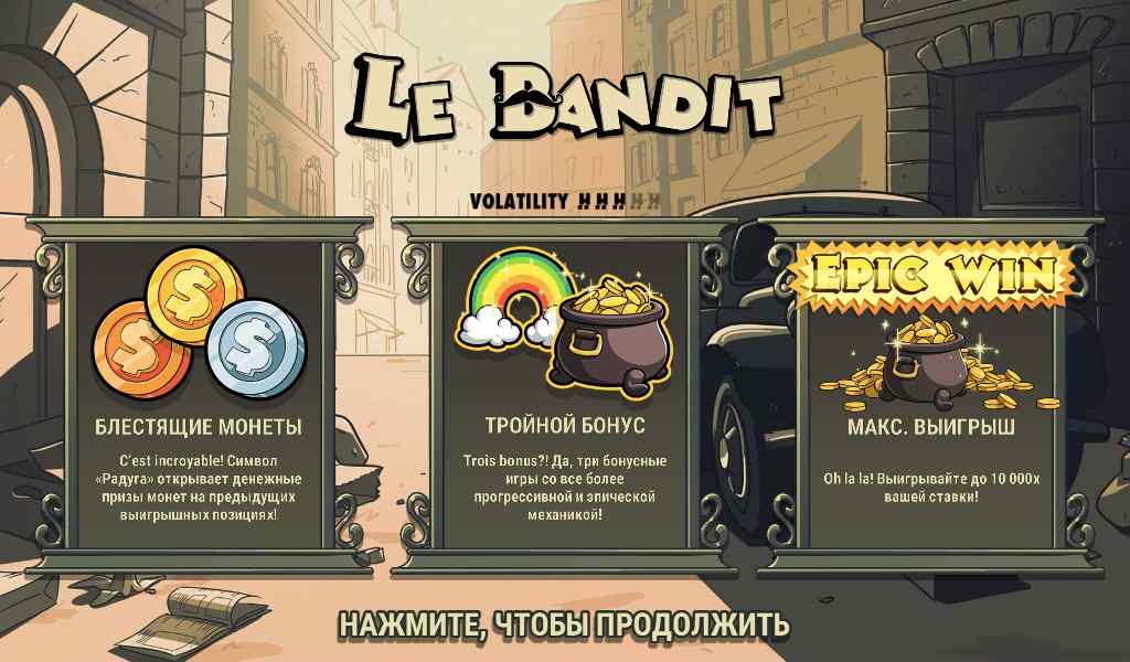 Le Bandit falls into the medium volatility category, meaning you can expect a balance between frequent smaller wins and the occasional big win. The base game RTP (Return to Player) ranges from 88.36% to 96.34%, depending on the chosen settings. However, the bonus rounds boast a higher RTP, offering better potential returns. While the maximum win of 10,000x your bet is decent, it's important to remember it's a rare occurrence.