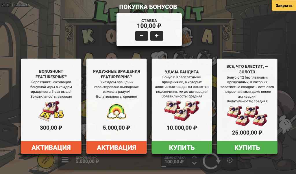 Players have 4 bonus game options available for buying. All bonuses differ in cost, RTP and starting conditions. We have prepared a comparison table to make it easier for you to choose the best option.