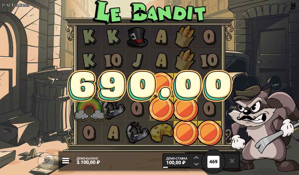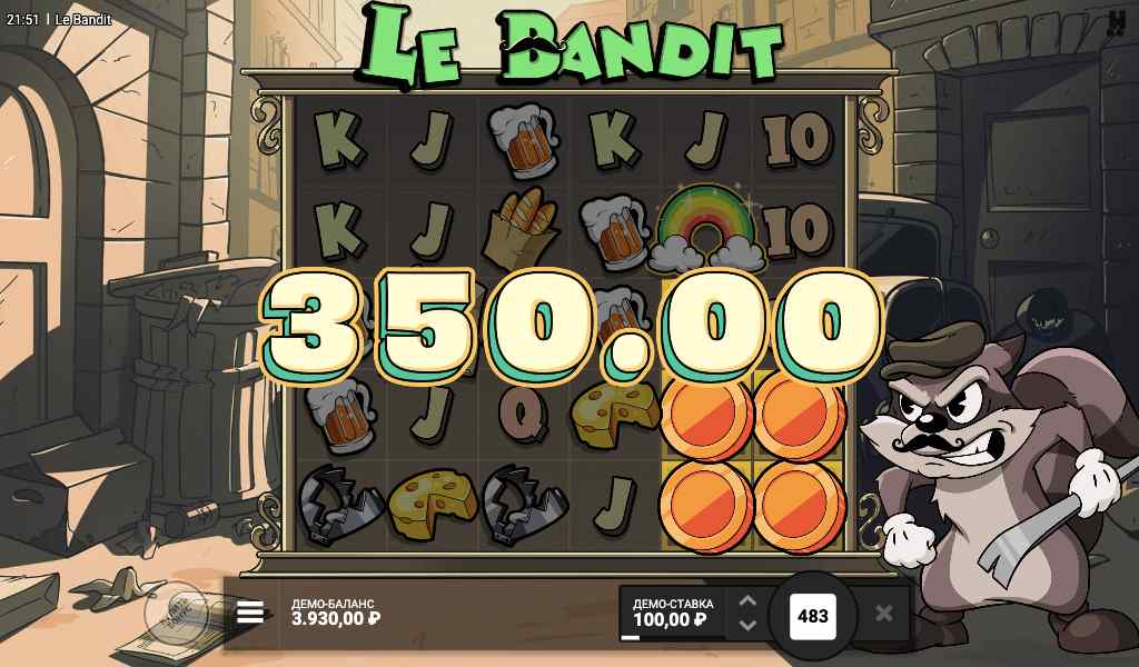 Le Bandit takes place on a 6x5 grid, where winning symbols disappear and new ones cascade down, offering the chance for multiple wins in a single spin. To score a payout, you need to land at least 5 matching symbols. With a hit rate of over 32%, you can expect frequent wins, keeping your gameplay session engaging.
